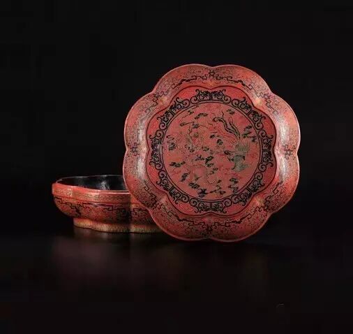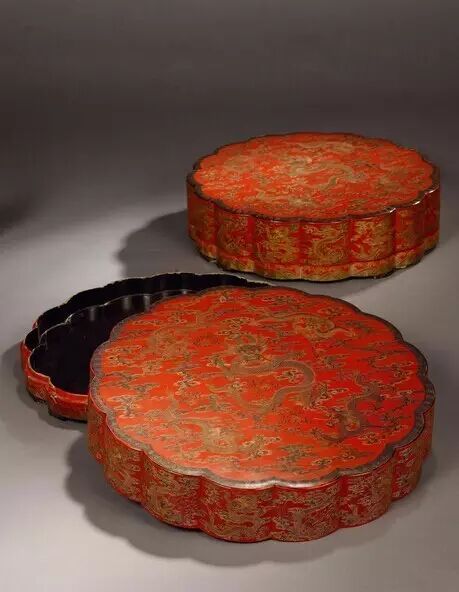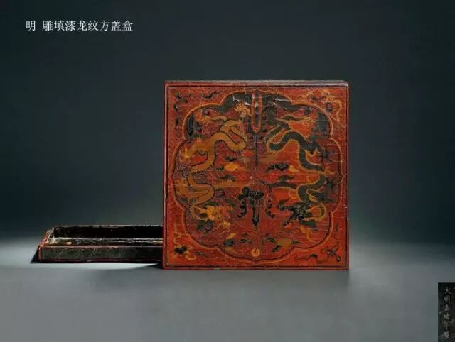雕填漆龙凤盖盒