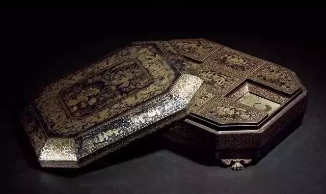 清 漆器描金人物八边盒