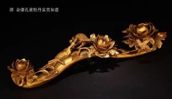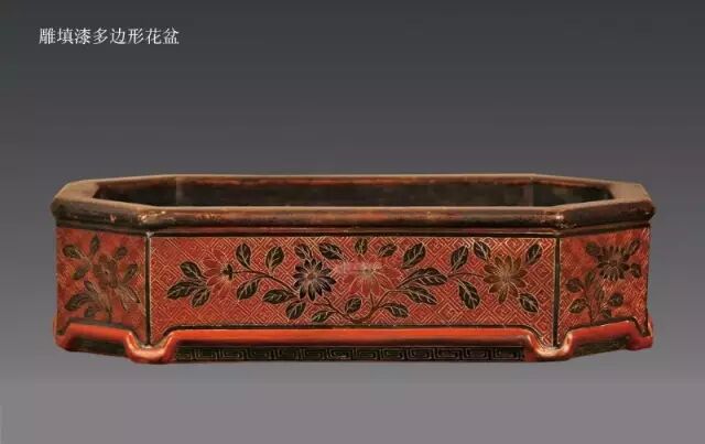先用填漆的方法做好花纹,然后沿着花纹轮廓勾出阴文线,勾出花纹上的纹理,增加画面丰满度之后,再在阴文线内填金,雕填技法盛行于明清两代。
