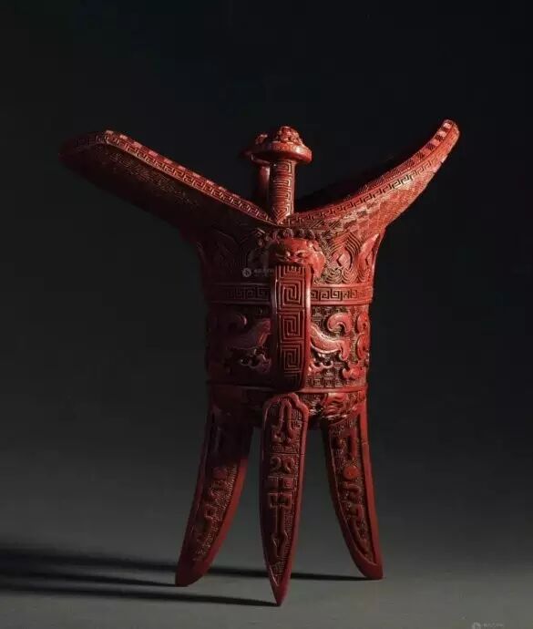 清乾隆 剔红仿铜铺首纹爵杯