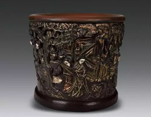 堆漆描金人物故事笔筒