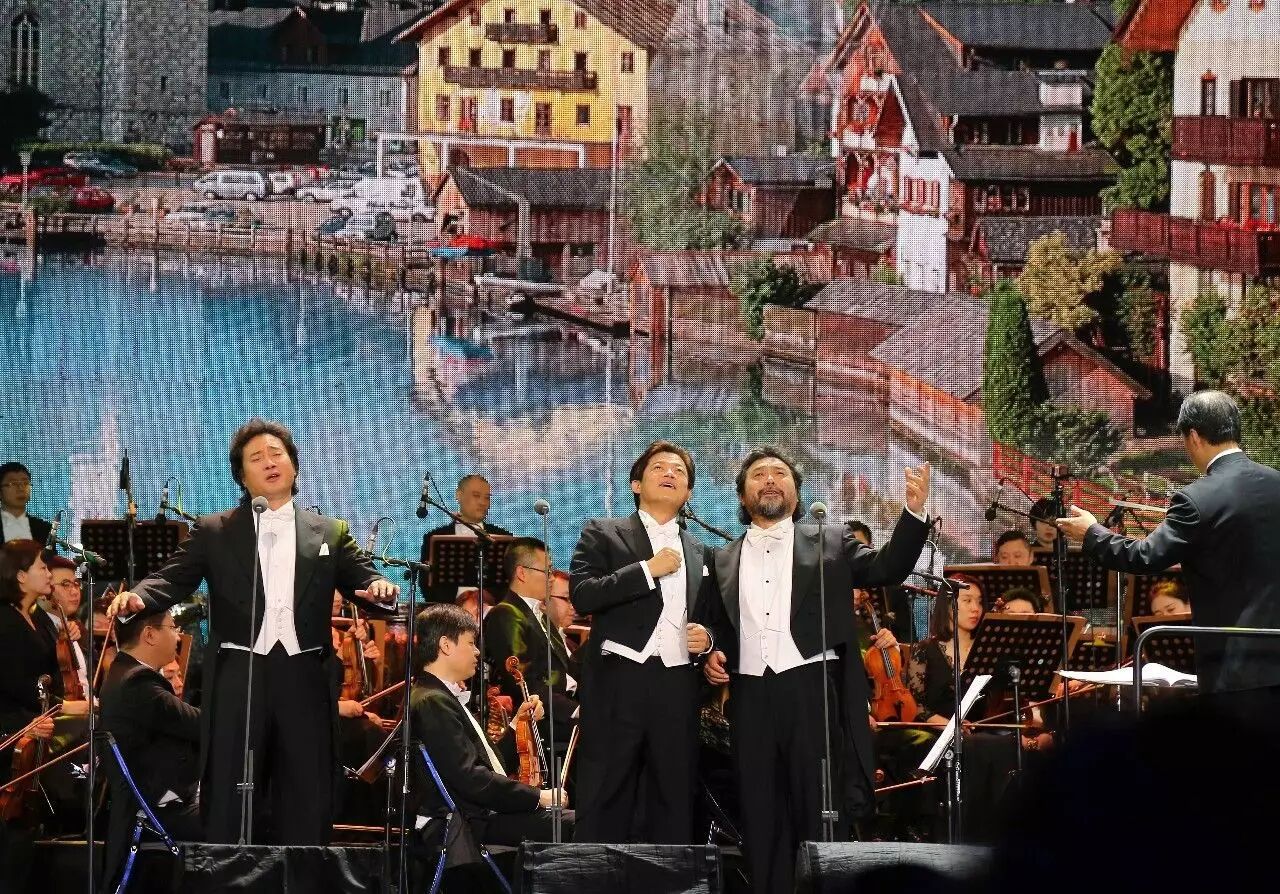 三大男高音饱满的歌喉、深情的演绎,现场的每个音符随着交响乐团的演奏在森林上空久久回荡。现场氛围热烈,观众听得如痴如醉,多次以雷鸣般的掌声、欢呼声请求返场曲目。