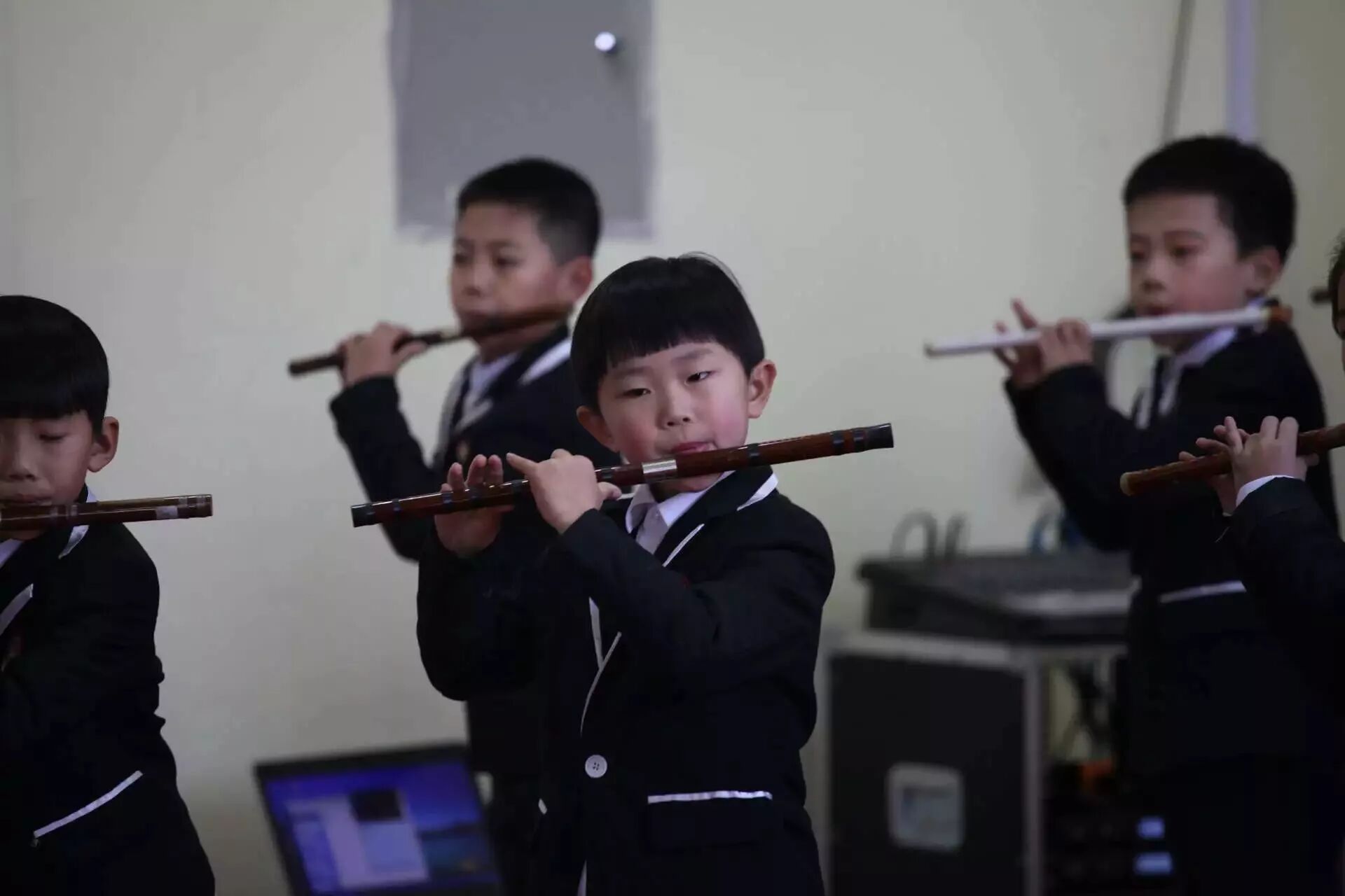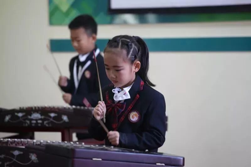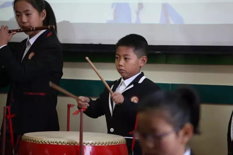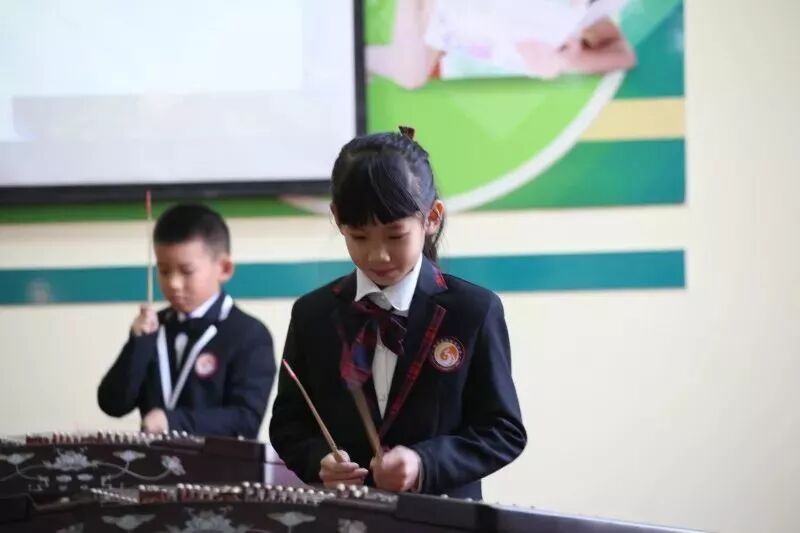 他讲到,音乐是有生命力的,在艺术教育领域的探索,我们不断地揭示出民乐文化浸润对孩子们的教育价值。这种价值不仅仅体现在才艺的发展,更触及对多种智能的培养、良好品德的养成、完善人格的形成。从惠及部分学生向惠及全体学生发展,构建起学校民乐特色文化,让每个孩子都能参与其中,并获得超越艺术修养的成长体验。从2015年新校区成立到现在,短短的三年的时间,民乐已经普及全校,并且成立了自己的乐团,取得了可喜的成绩,这些得益于我们对特色教育的执着与追求,更是得益于家长们的关心的支持,使得我们每一个生命个体在成长的舞台上充满活力、熠熠生辉。