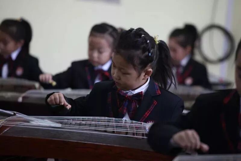 民乐课程展演在一阵婉转的琵琶声中拉开帷幕,台上的小姑娘们手握琴弦,犹如雨打芭蕉,空谷幽兰,一颦一笑,尽显优雅温婉。弹拨间,好似余音绕梁,三日不绝……
