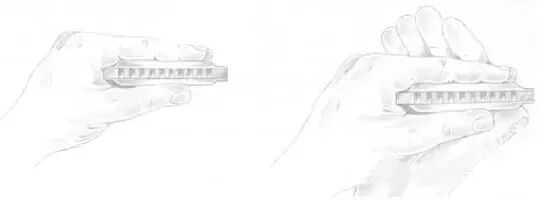 在学习手哇音与手震音之前,可以先看看上面这幅图的持琴方式,这种方式类似于拿三明治的手法,所以口琴的别名也叫“铁皮三明治”,而这种持琴手法的好处,就是能够很方便的做出手哇音与手震音。