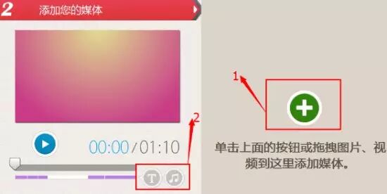 2、添加您的媒体:点击上面的按钮可以用图片、视频等文件将原视频内的文件替换掉,也可以更改背景音乐。