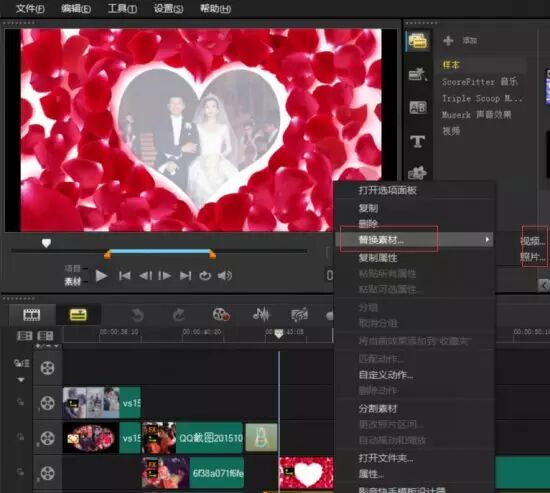 1、将下载好的模板通过会声会影打开,将待替换的文件在该模板的文件包内重新新建一个文件夹。接下来点击模板内需要替换的素材,右击选择替换素材里的视频或照片就可以了。