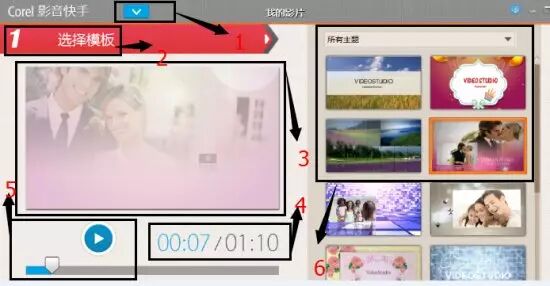 1、选择模板:打开会声会影自带的影音快手,如果已经下好了一段心仪的模板,可以将模板导入到影音快手内,选择该模板。需要注意的是,影音快手只能导入简单的模板,复杂的模板导入容易失败。具体的操作方法可参考:怎样在影音快手中导入模板?