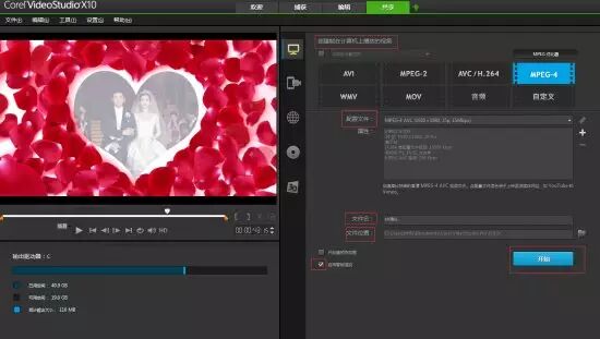 2、导出视频:点击共享,选择视频格式,视频属性,视频名称,保存路径,智能渲染等后点击开始即可。