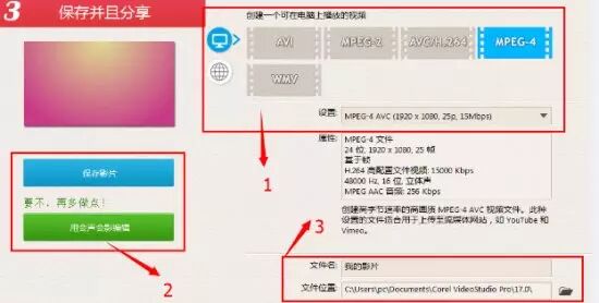 3、保存并分享:将替换好的视频导出文件,如果需要继续添加内容也可以通过会声会影继续编辑。