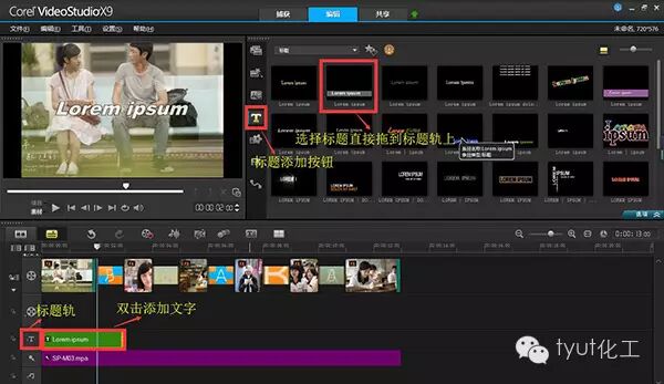 2)在标题字幕中选择合适的标题格式拖入到覆叠轨中;