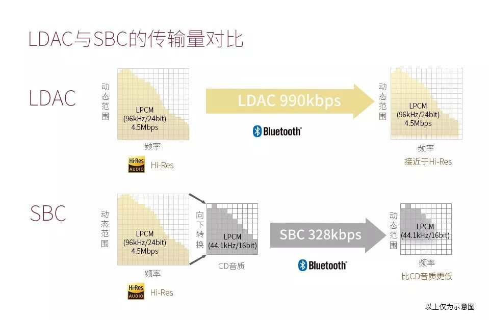 ,直接简单粗暴的提高了信道,使得LDAC的传输速率比普通的Bluetooth提高3倍,从而实现接近Hi-Res Audio的音质。