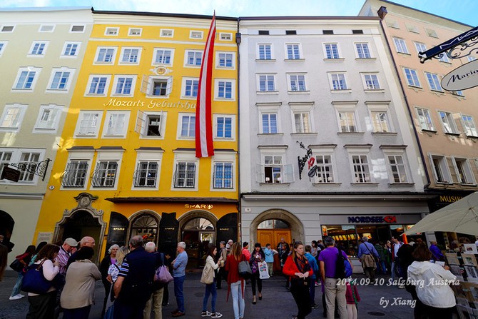 粮食胡同9号,悬挂着奥地利国旗的黄色楼房,就是莫扎特出生地。