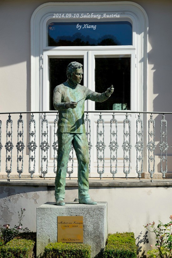 从米拉贝尔花园大门离开,往萨尔察赫河岸边走去,在Makartsteg桥旁有一幢白色的房子,故居门前有一尊真人大小的铜像,这是卡拉扬故居。铜像是在音乐界享有崇高地位的指挥大师——赫伯特·冯·卡拉扬,他于1908年出生在萨尔茨堡。