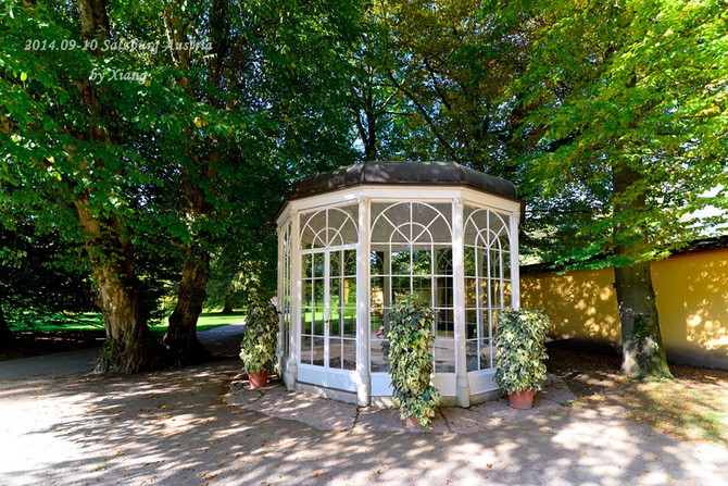 在花园一角,是电影《音乐之声》中经典场景之一的玻璃屋——上校的大女儿和小男友约会的地方。玻璃屋的门是锁住的,据说原因是曾经有不少青年男女,在玻璃屋中模仿电影中的高难度舞蹈,在玻璃屋中的凳子上跳来跳去,造成摔伤。