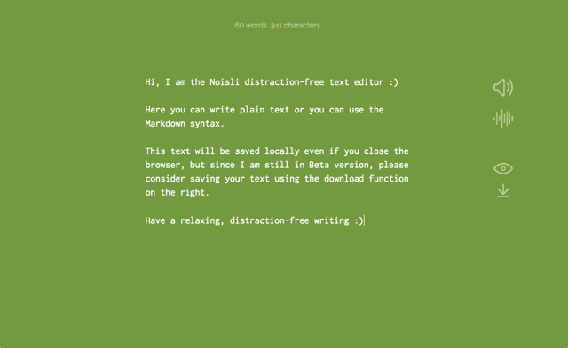 不过 Noisli 也有写到:这项功能目前仍在测试(Beta)阶段,建议你还是利用下载按钮来把写好的内容下载回来。对了,这是一个让你专注的编辑器工具,当然也可以搭配 Noisli 的环境音效功能来一同使用,效果会更理想喔!