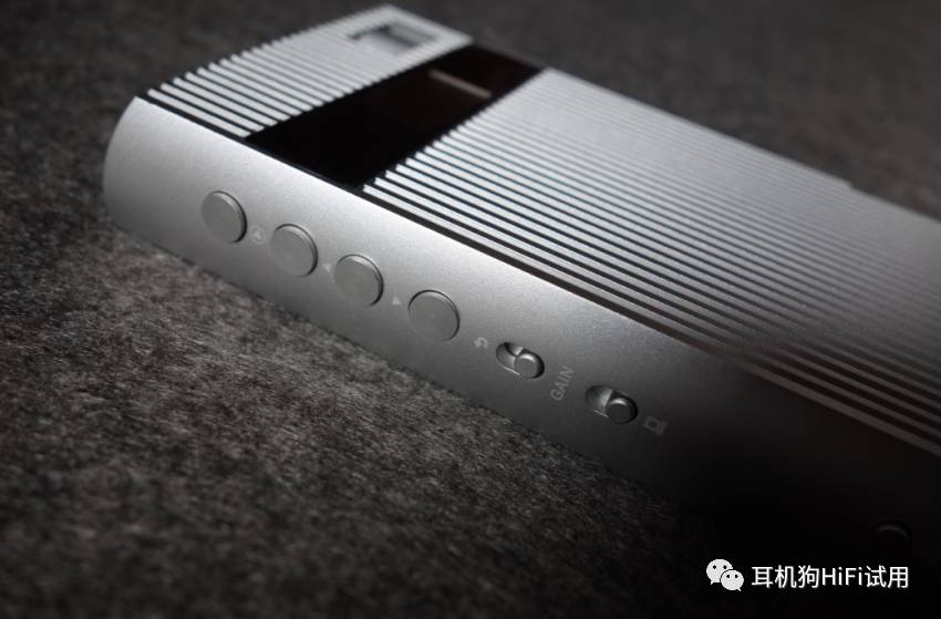这斜的很风骚。顶部两个口分别是3.5mm耳机口和2.5mm平衡耳机口。