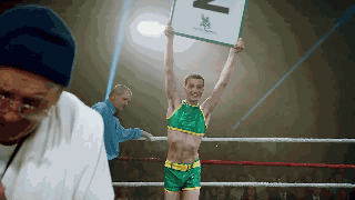 我们在回头看影片前半段,原来房间墙上海报中的偶像不是坐着的拳击手,而是穿着比基尼的举牌女郎。当他在练习举起哑铃的时候,举起哑铃的动作以及脚下的步伐也与拳台上的举牌和转身一模一样。这些带有提示性的细节,在观看初期容易忽略,但在恍然大悟时却别有一番风味。
