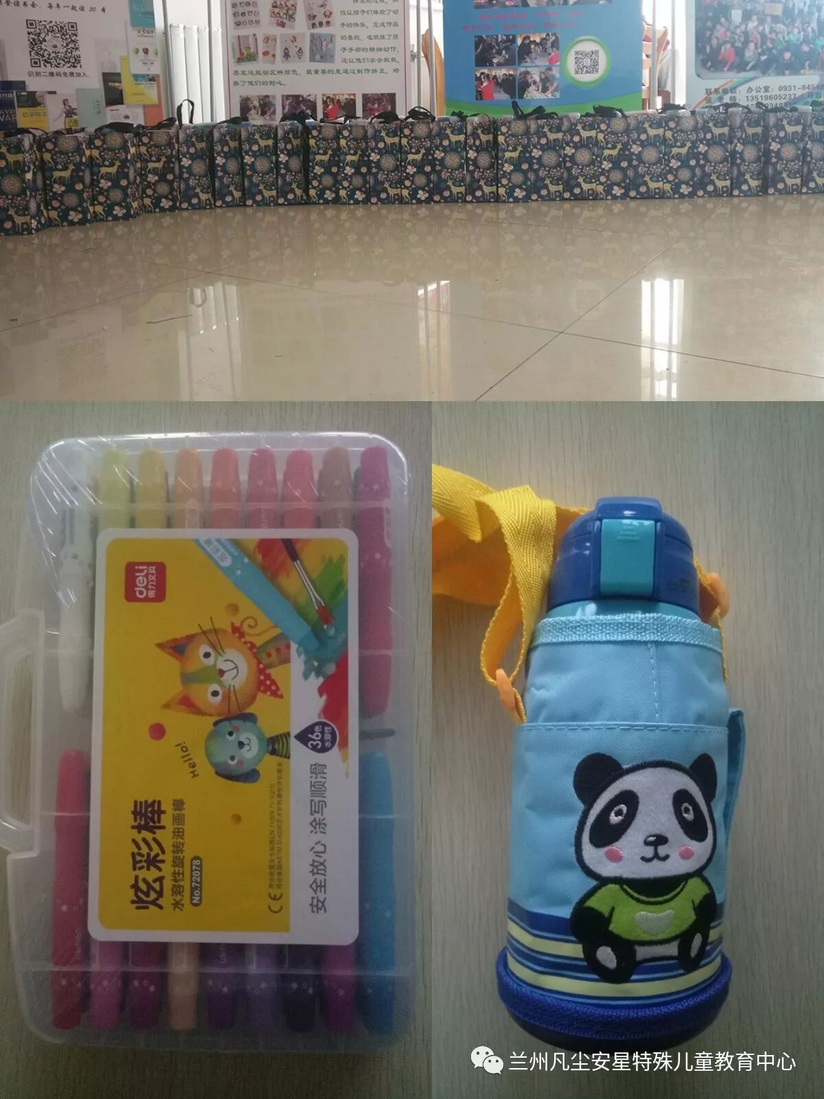 兰州馨和园清真别墅餐厅为孩子们带来了高级保温杯和36色水彩笔。