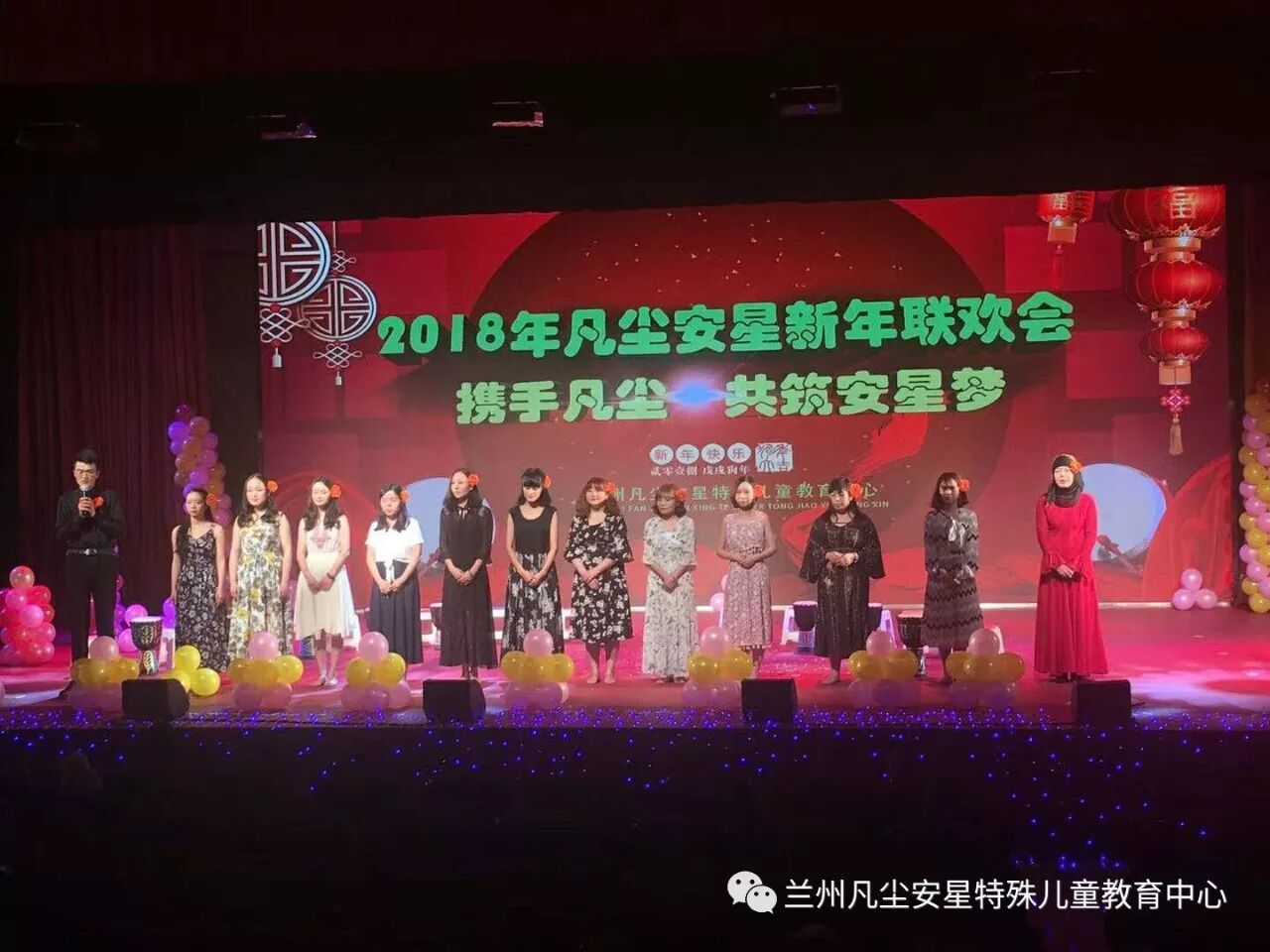 此次新年联欢会舞台装饰由名门高端婚礼定制免费提供;家长、孩子及老师化妆由兰州达人学校、兰州天祥健康管理咨询有限公司、西北师范大学社管院研究生免费提供。