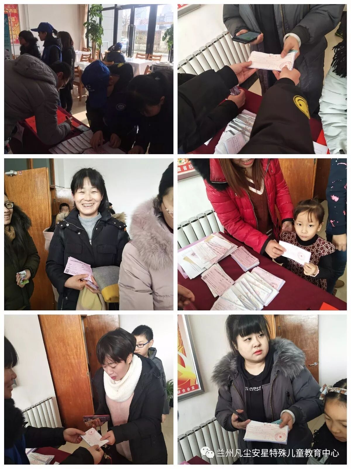 “百人百元温暖陪伴计划”的陪伴者领取一年来温暖陪伴善款的票据。