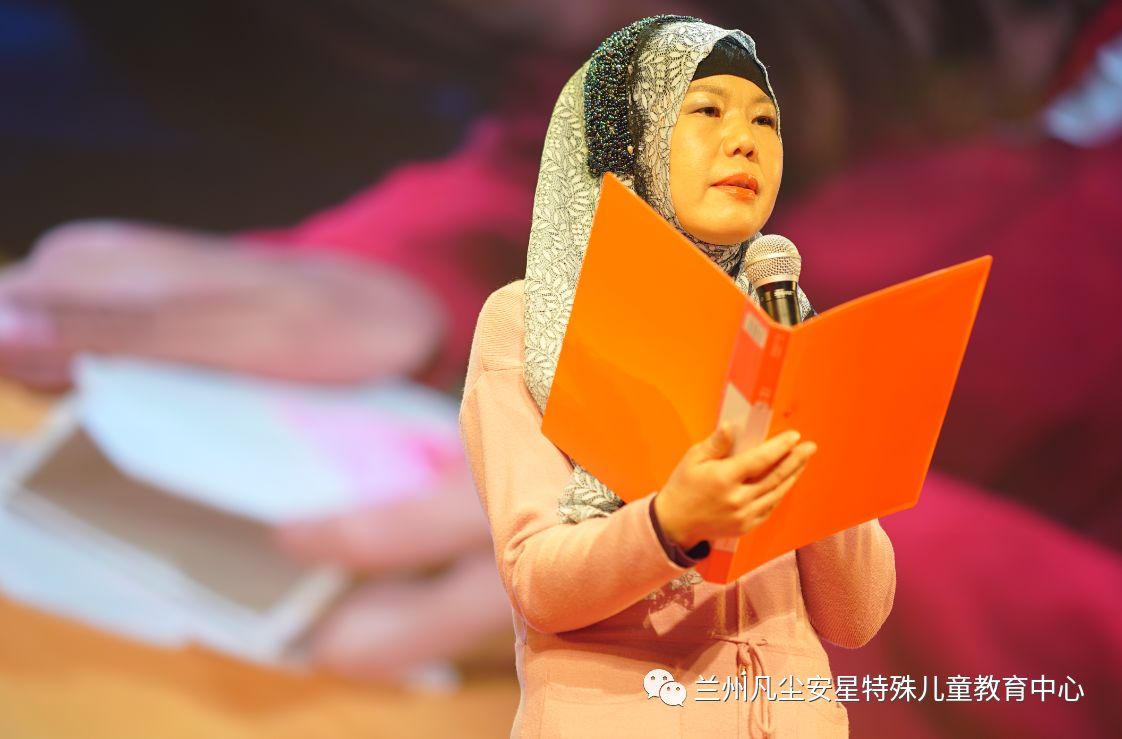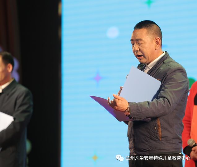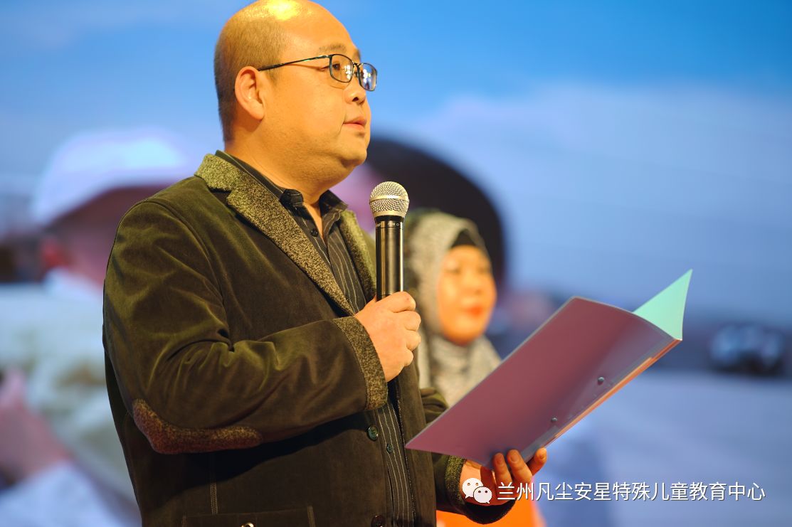 兰州市残疾人联合会康复处滕汉云处长致辞,为兰州凡尘安星孩子们送上了美好祝福,并倡导现场观众关注残疾人群体,关爱心智障碍人士。