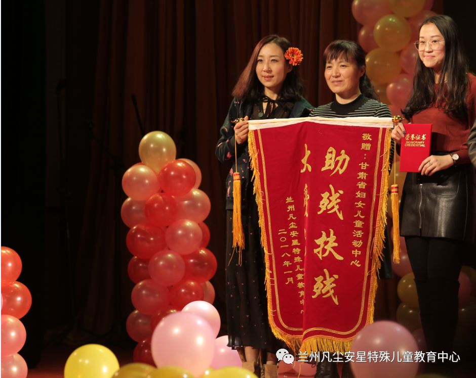 甘肃省妇女儿童活动中心为本次联欢会提供了场地支持,兰州凡尘安星特殊儿童教育中心主任张娟老师为其颁发了锦旗。