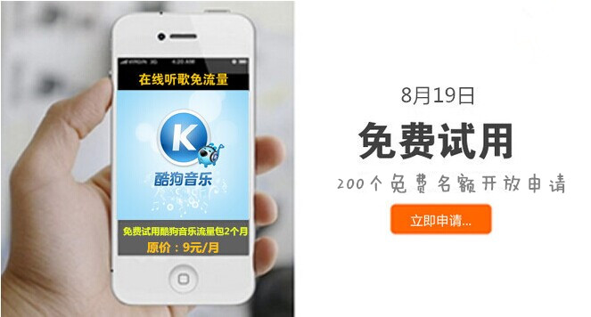 沃妹,感觉每个月流量都不够用,听首歌流量就走了十几兆,心痛呀!莫忧桑,潮州联通提供的200个免费试用酷狗音乐流量包(原价是9元包6G哇)开抢啦,手机用酷狗音乐听歌、看MV,下载歌曲,全部免流量哦!