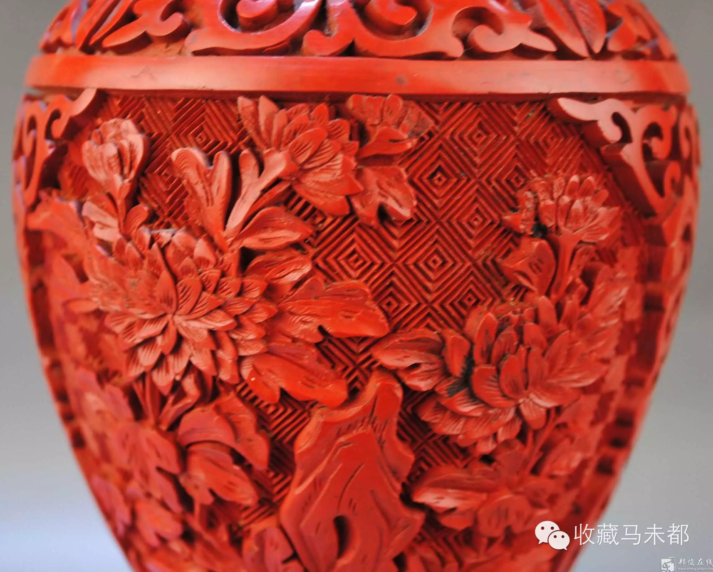 此技法成熟于宋元时期,发展于明清两代。其法常以木灰、金属为胎,在胎骨上层层髹红漆,少则八九十层,多达一二百层,至相当的厚度,待半干时描上画稿,然后再雕刻花纹。一般以锦纹为底,花纹隐起,华美富丽。