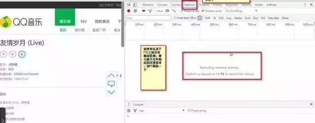 我们在网页版中按下F12,相信熟悉web的人应该都知道,打开开发者工具。如果你在按下F12之前没有播放歌曲,那么就不会有相应的资源请求,按F5刷新一下。