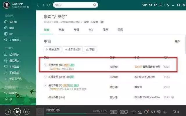 客户端要付费,都说了我很忙(qiong),我们试试QQ音乐网页版搜索这首歌,点击下载。