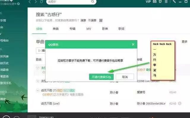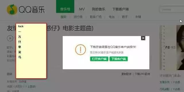 在QQ音乐网页版中,我们也搜索到了这首歌,然而点下载,但是要先下载QQ音乐客户端,问题是下了客户端,下载这首歌的话,你还是要去付费。天哪!做人太难了,下首歌怎么这么难!重点要来了 重点要来了 重点要来了