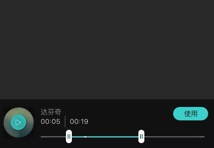 美摄对于音乐的使用,相当自由并且人性化。选择音乐后可以选择任意长短,任意片段,并且可以显示截取的时间,也可以试听选择的部分!选取结束后,点击使用就会应用到制作的视频中了。如下图
