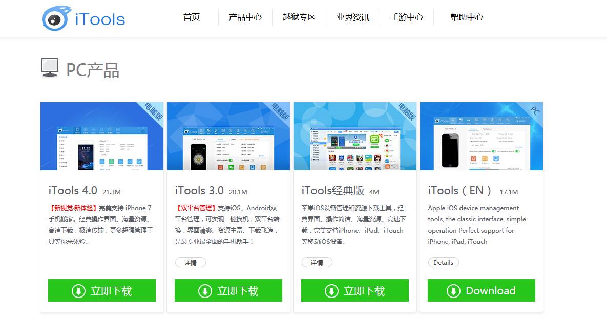 打开电脑浏览器搜索iTools,或者直接输入网站pro.itools.cn,进入下面图示网站后,选择右边第三个经典版进行下载