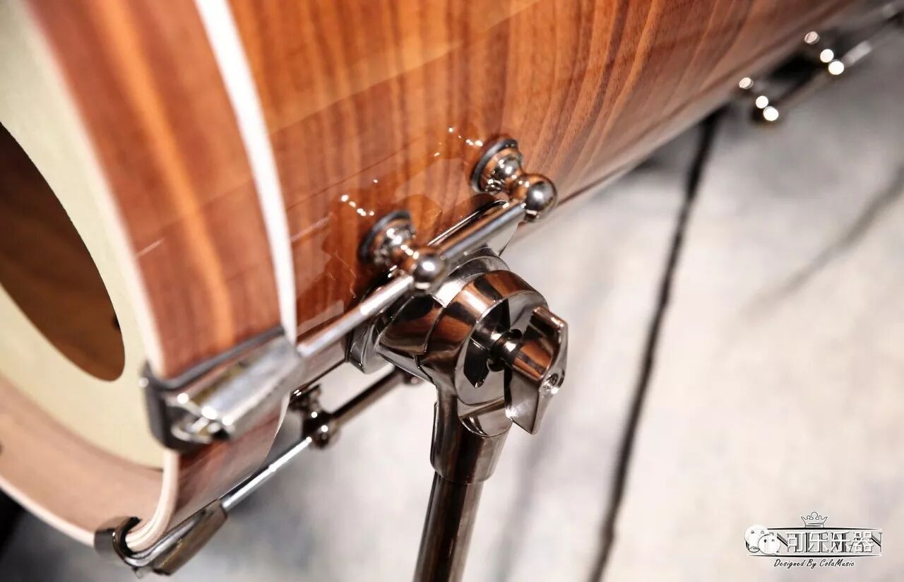 鼓腔材质:顶级进口 黑胡桃木( 纹理清晰无杂 高透耐磨光亮漆 )鼓腔规格:12X9/14X5.5/14x14/20x18 硬件标准:全黑镍硬件 加强加粗底鼓支撑 全压铸圈鼓皮规格: 全美产Remo砂皮 底鼓P3