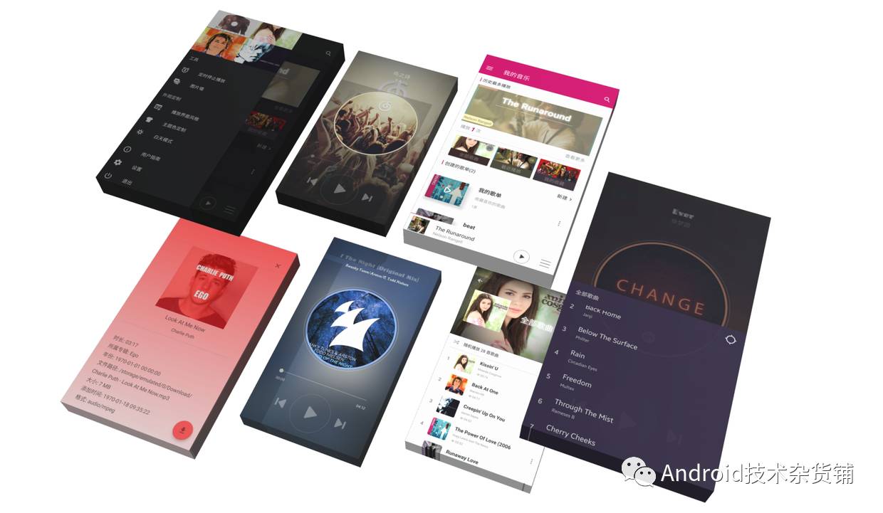 Android 手机本地音乐文件播放器。应用开启了单独的播放服务进程,在服务进程中控制音乐播放逻辑,目前已实现功能如下:通过耳机和通知栏快捷控制音乐播放、创建歌单、本地歌曲搜索、歌曲多选操作、记忆播放、自动切换到夜间模式、定时停止播放、应用主题自定义以及播放界面风格选择等功能。