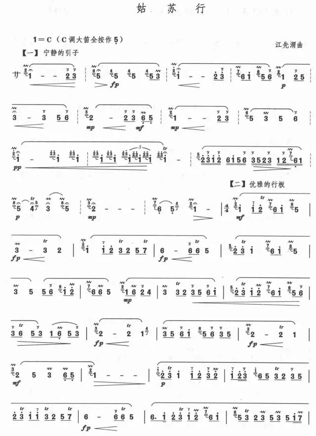 《姑苏行》展现了古城姑苏的秀丽风光和人们游览时的愉悦心情,旋律典雅明快,采用昆曲音调,是南派曲笛的代表性乐曲之一。演奏家俞逊发,笛乐造诣高超。世人皆赞“古有俞伯牙,今有俞逊发。”