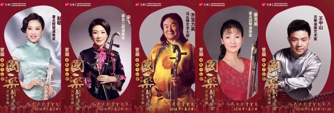 不同于其他形式的音乐会演出,,充盈着喜庆祥和的气息,通过二胡、古筝、琵琶、马头琴、京胡等具有代表性的民族器乐为观众带来了一场传承中华传统文化又闪耀着创新花火的新年国乐盛宴。“民乐皇后”宋飞、“中央民族乐团琵琶首席”赵聪、“筝坛圣手”王中山、“五胡乐女”姜克美、“世界马头琴大师”齐·宝力高,,奏响悠悠中华韵。