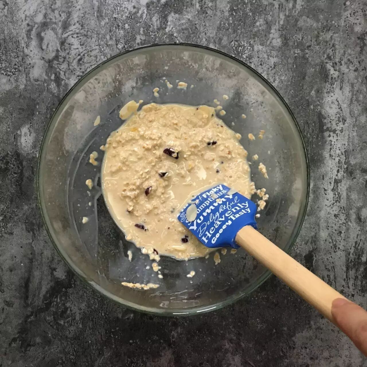 打入鸡蛋,加1/2扁桃仁和蔓越莓,拌均匀。