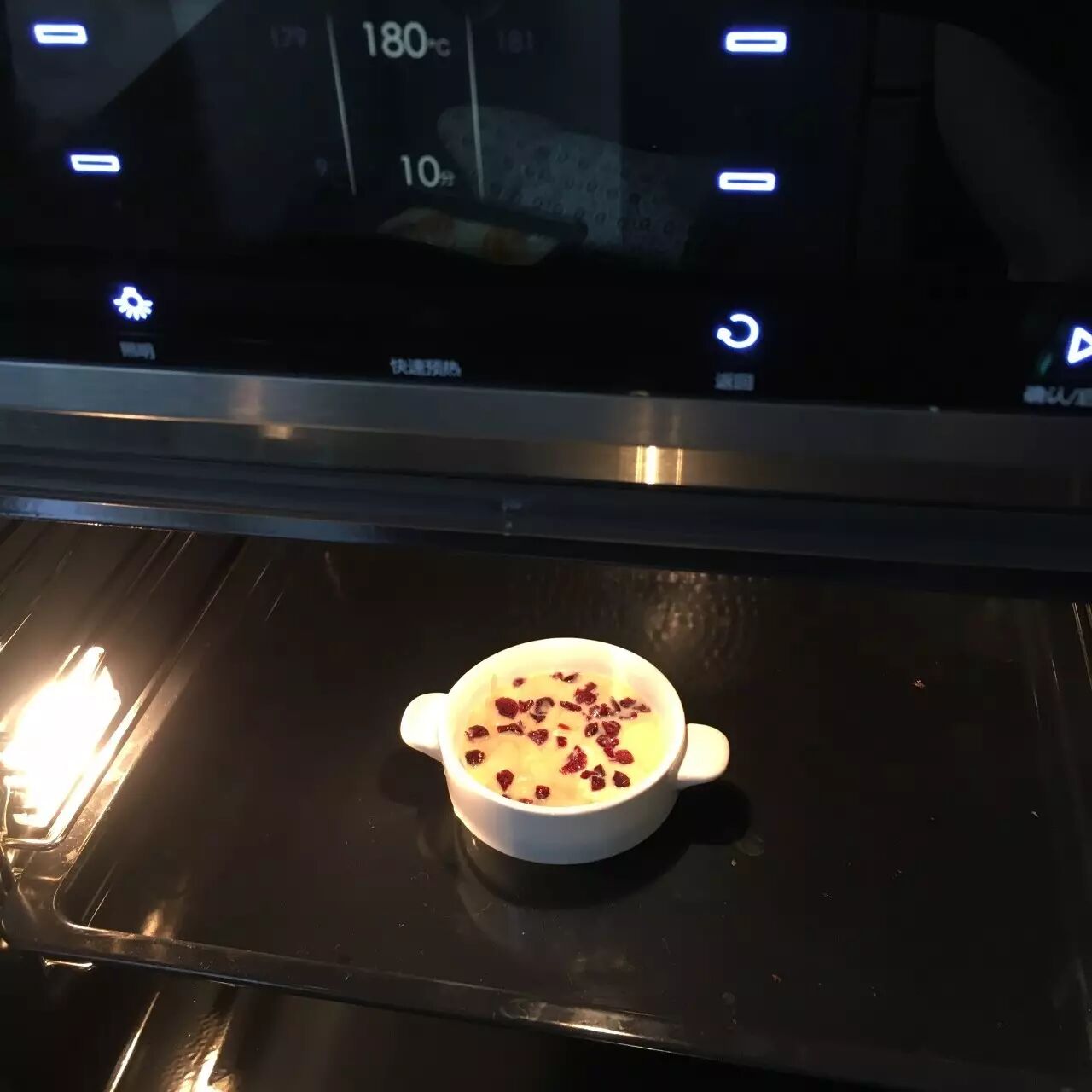 方太烤箱预热至180℃,放入焗碗,10分钟即可。
