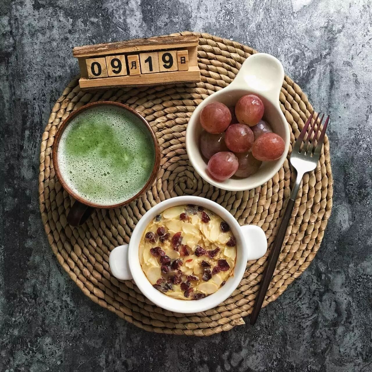 # 猕猴桃汁+蔓越莓扁桃仁焗燕麦+葡萄 #