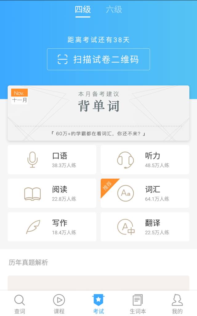 app上提供最近几年的考卷,附有详细的分析。在解析中,我认为在翻译和作文上的解析最为给力,尤其是作文,有审题构思、写作提纲和高分范文及点评。