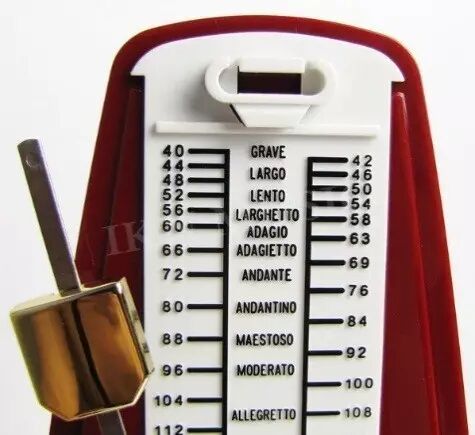 这个板那个板的看起来好抽象,就算背下来也不知道究竟是多快多慢的速度!那怎么办呢?这个时候,你需要买一个节拍器(如下图),节拍器上,速度术语都与具体的量化数字一一对应的。