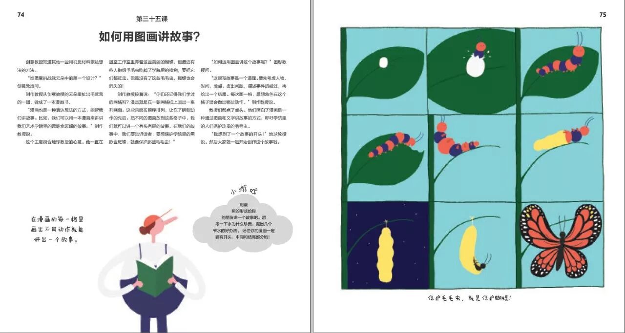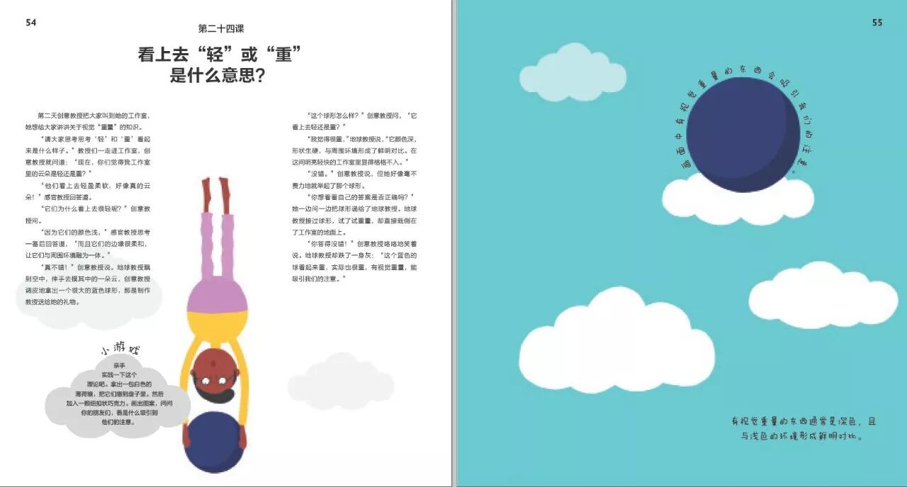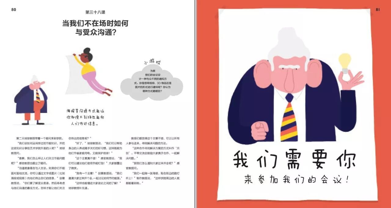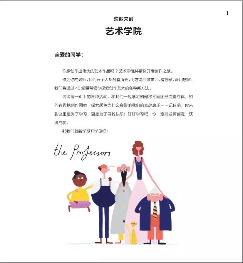 课堂式的授课,就一定要有老师。书中为孩子们请来了5位专业的教授分别为:地球教授、制作教授、图形教授、创意教授和感官教授,他们代表了艺术设计领域需要特别关注的5大要素,教授们会在书中会时刻提醒你,学习设计要关注这五大要素。