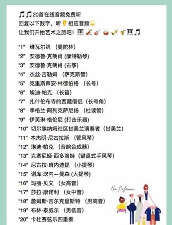 还有超级丰富的乐器知识:弹拨乐器、吹奏乐器、打击乐器、键盘乐器、弓弦乐器都有哪些?它们如何组成交响乐团的。学习了这些,将会补足不懂欣赏音乐会的遗憾。