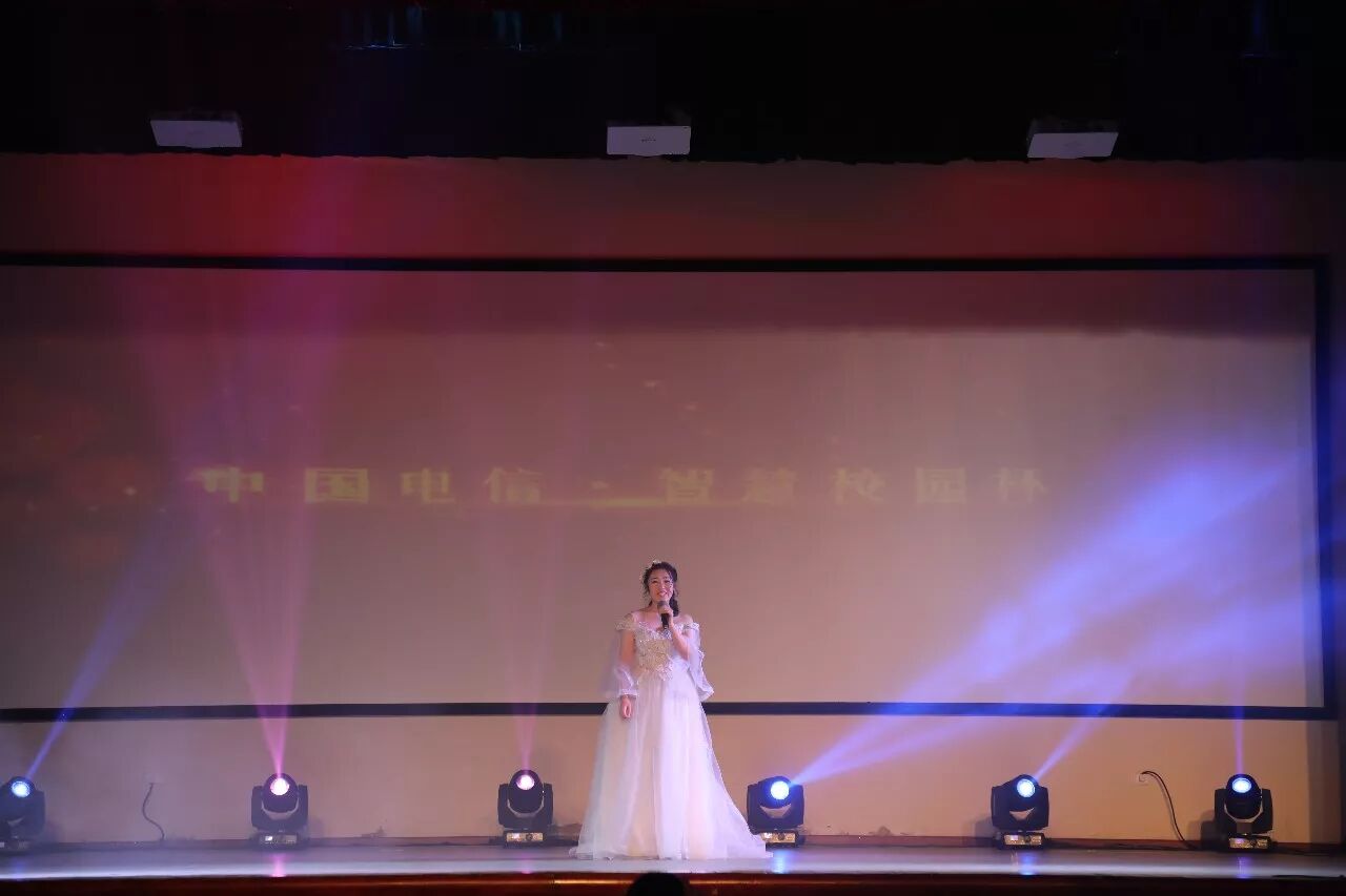 经过激烈的比拼,1302的李依欣、1506的毛丹、1501的陈金蝶获得了全场最高分,分列十佳冠亚季军,电信公司提供了丰厚的奖品,选手们很开心。最后,校党委书记、校长王万良、副校长杨英、中国电信公司松阳分公司叶经理及音乐组各位评委老师上台给获奖选手颁发奖品及证书并与歌手合影留念。