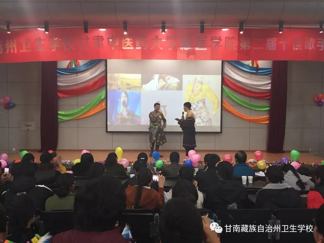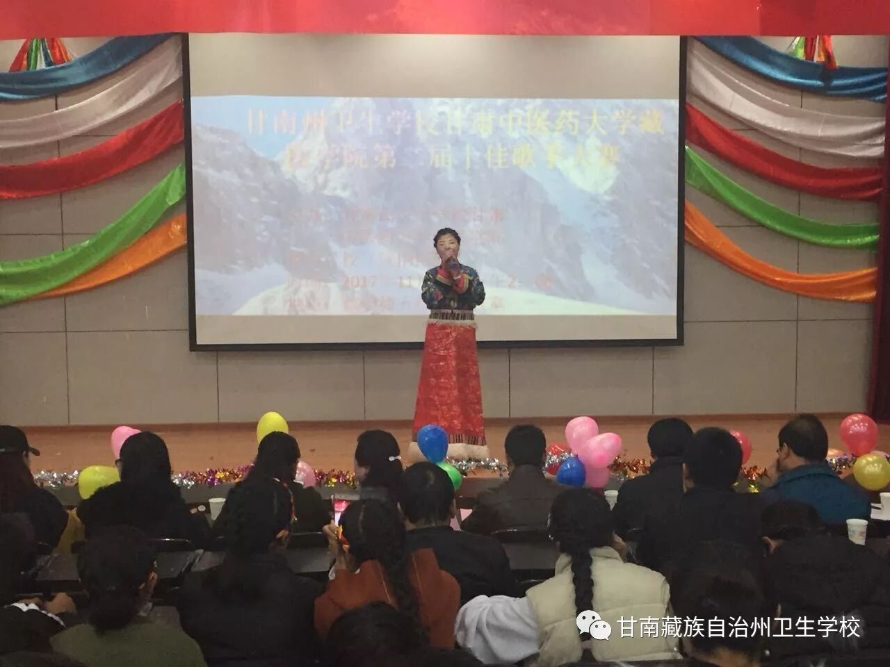 2017年11月25日,甘肃中医药大学藏医学院十佳歌手大赛在教学楼五楼阶梯教室开幕,12位选手展开了一场别开生面的歌曲盛宴,《民歌串唱》、《巴拉格宗》、《草原情歌》、《央家庭》……一首首美妙的歌曲经同学们纯真、稚嫩的演绎异常精彩。
