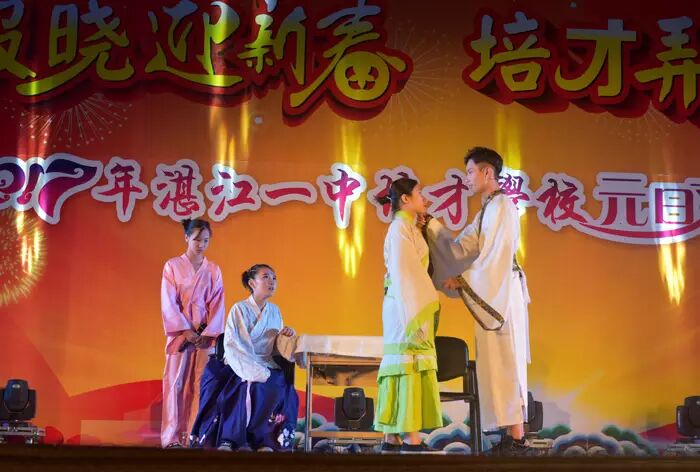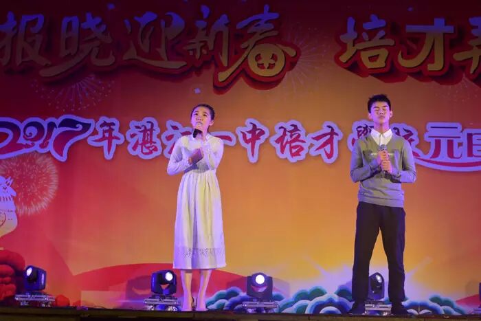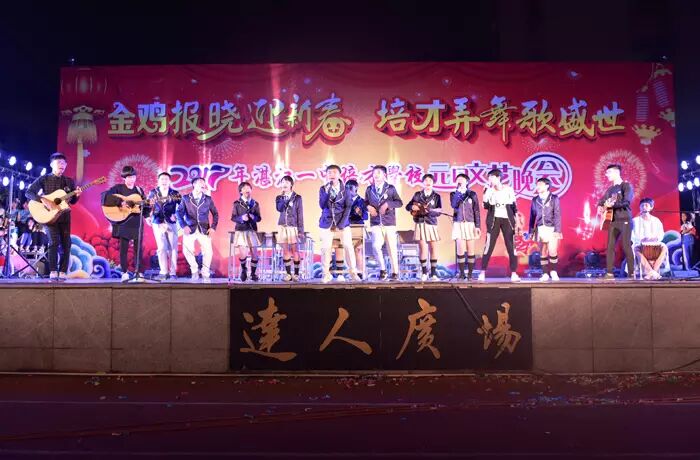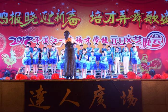灵猴辞旧岁,金鸡报春来。12月29日晚7时,培才学校达人广场内流光溢彩,全校师生9000余人欢聚在此,共同欣赏元旦文艺晚会,迎接2017的到来。晚会以“金鸡报晓迎新春,培才弄舞歌盛世”为主题,为观众献上了一场美妙绝伦的视听盛宴。
