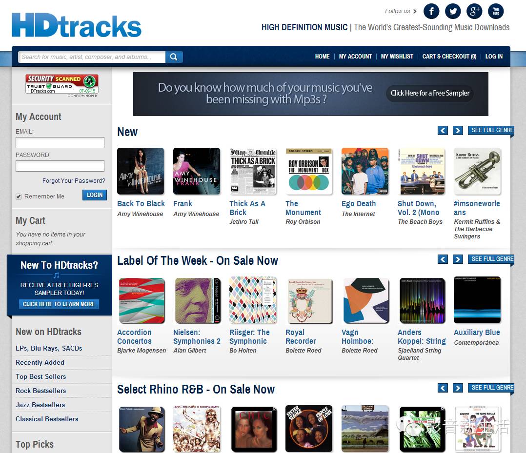 HDtracks是目前知名度最高的高规格音乐文件下载网站,这个网站由知名发烧唱片厂Chesky创始人David与Norman Chesky兄弟成立,除了自家唱片之外,也销售Warner、EMI、Blue Note、ECM等唱片大厂的音乐,聚集成网路上高规格唱片选择最多的网站之一。
