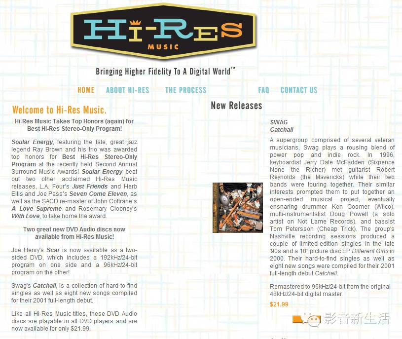 hiresmusic.com网站创立于2010年,他们不提供档案下载,而是卖24bit/96kHz高解析DVD,这或许是解决下载频宽有限的作法,但是要从海外购买就较为麻烦。